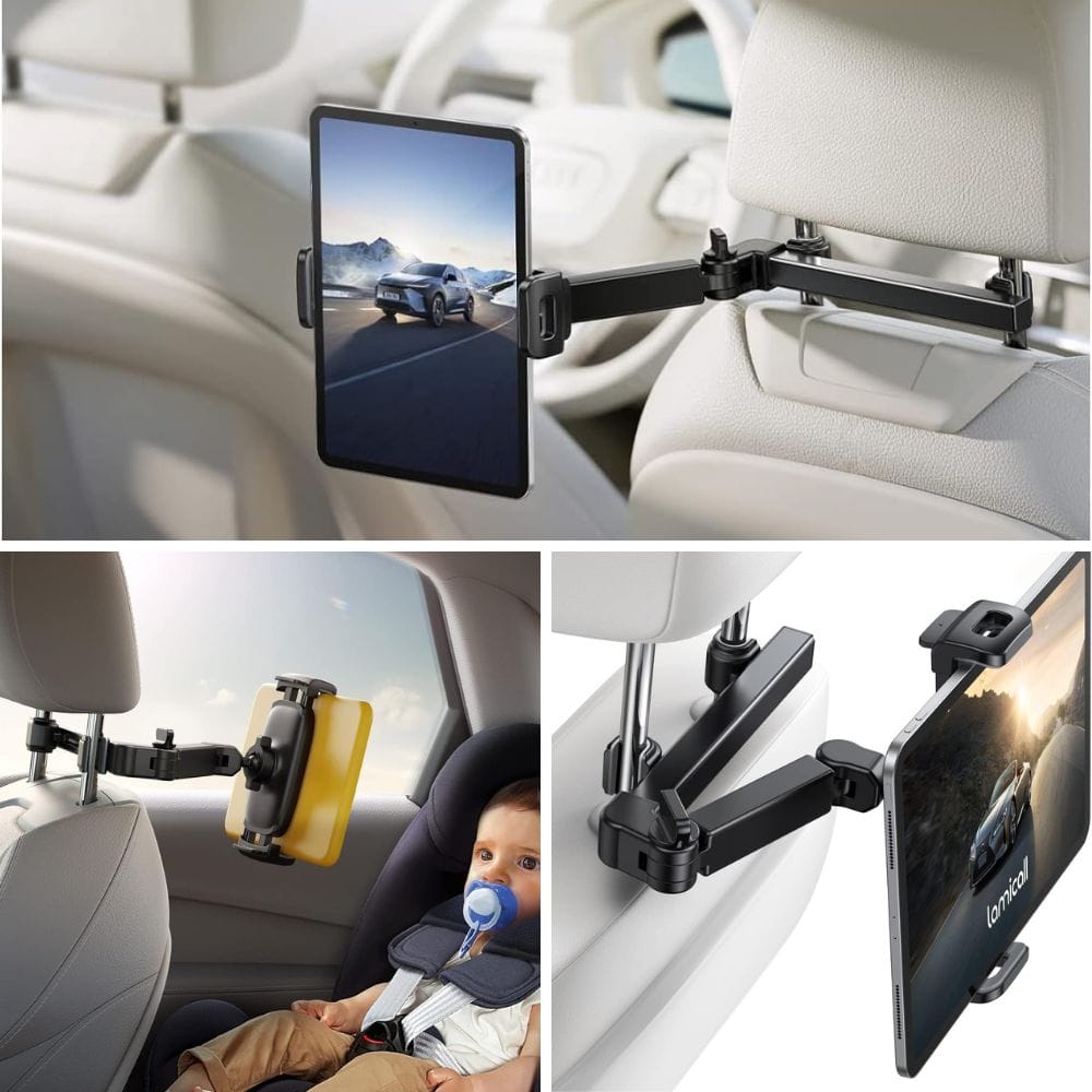 Choosing the right tablet car mount requires considering a few key factors. First, ensure it is a universal tablet holder, meaning it can adjust to fit different tablet sizes and car models. For example, the Lamicall Car Headrest Tablet Holder offers flexibility with a 360° rotating ball and an extension arm that adjusts the distance, making it great for both an iPad mini and other larger tablets. Check the compatibility with your vehicle's headrest and ensure it can be securely attached.
