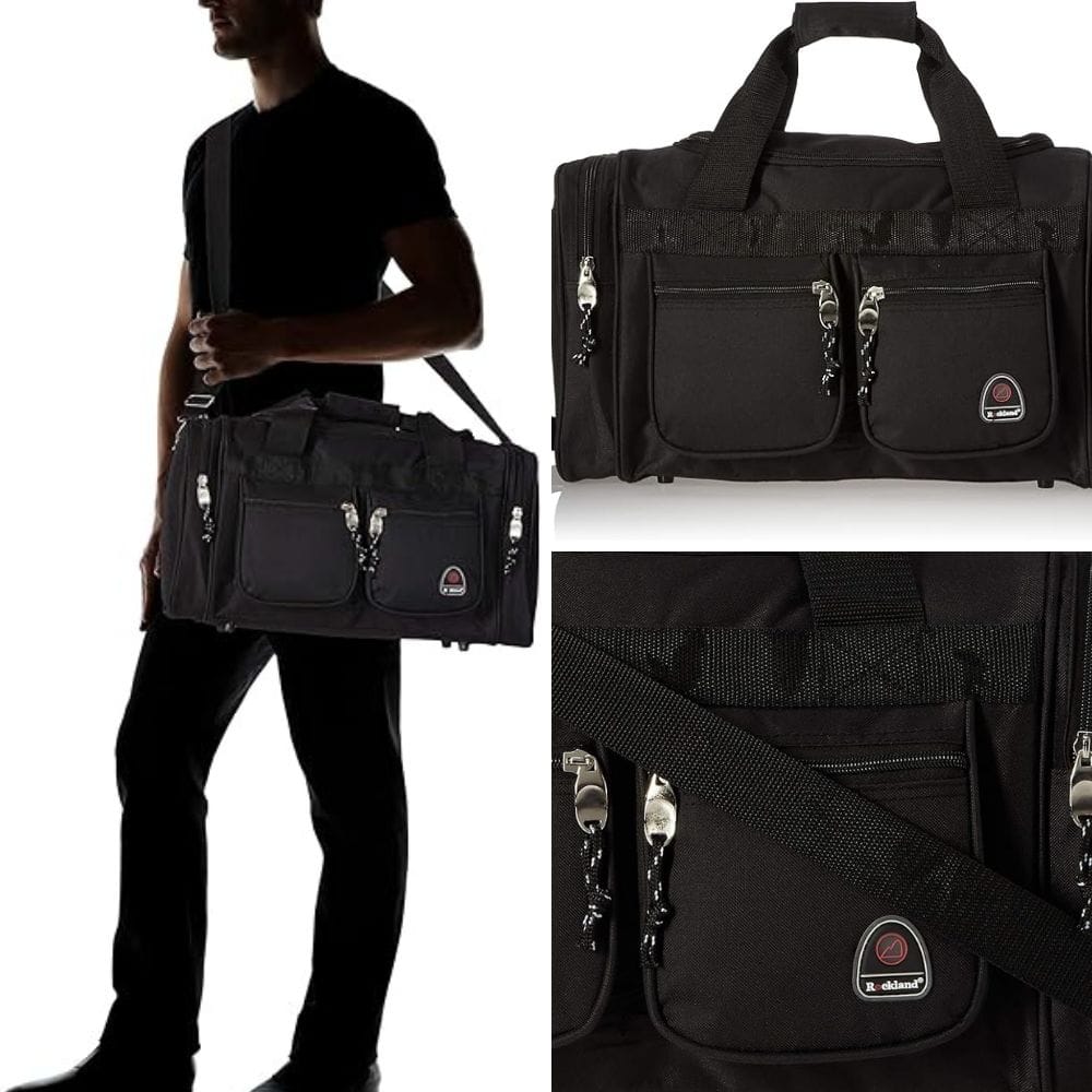 Last but certainly not least, meet the Rockland Duffel Bag – the sturdy stalwart of travel gear. Clad in heavy-duty polyester armor, this duffel dares the world to try and scuff its surface. The U-top opening yawns wide, inviting your belongings into its commodious maw, while multiple zippered pockets stand guard, securing your treasures. Whether slung over your shoulder or gripped in your hand, this bag remains unflinchingly comfortable and unfailingly spacious. For the traveler who seeks a blend of simplicity and efficacy, the Rockland Duffel is a beacon of reliability in a sea of fleeting fancies.