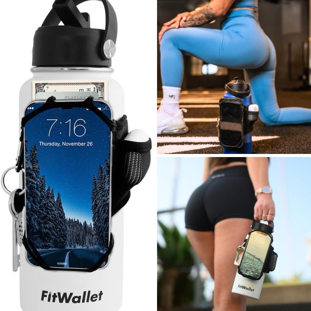 Meet FitWallet, your gym water bottle's best companion. Designed to hold bottles from 18 to 100 ounces, it trumps bulky gym bags, purses, or crammed pockets. It's your water bottle's original caddy.
