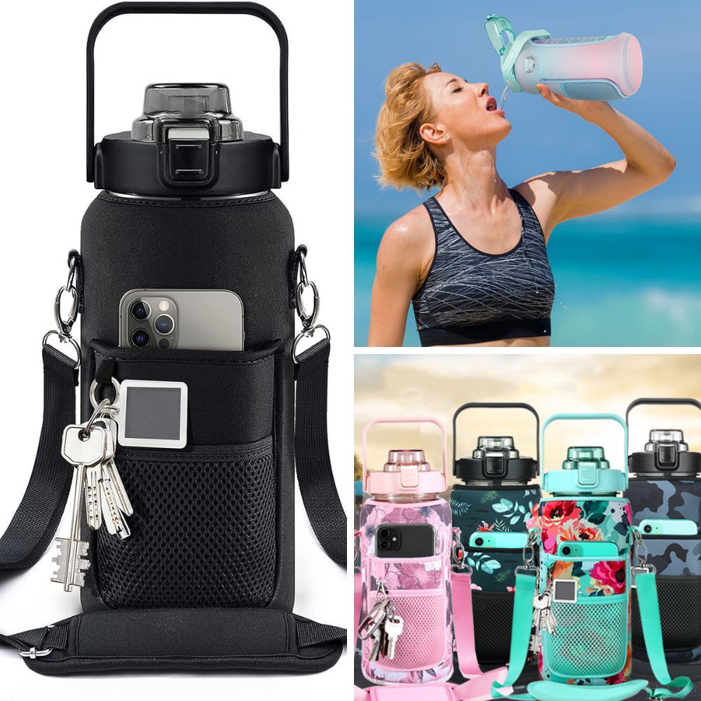 The Futaiphy Half Gallon Water Bottle with Sleeve elevates hydration to an art form. Its pop-up lid, fortified with a silicone O-ring, ensures leak-proof, dust-proof sipping. A button prompts the straw to dance, or remove it for a brisk pour. The wide-mouth opening welcomes ice cubes and easy cleaning.
