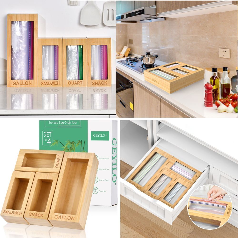 This Bamboo Ziplock Bag Organizer is tailor-made for organizing your food storage bags.